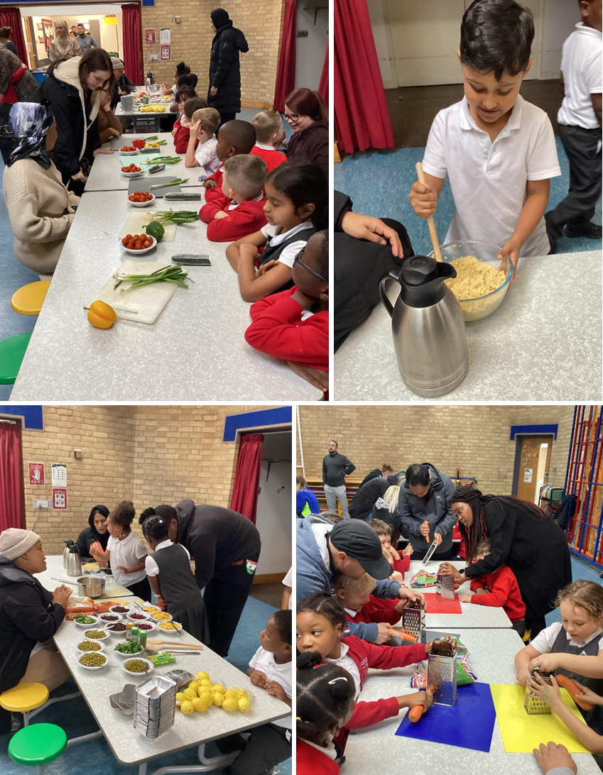 We had a fantastic time at the recent Year 2 family workshop, where children and families came together to explore healthy eating and hands-on food preparation. It was wonderful to see the children confidently cutting, grating, peeling, and mixing a variety of fresh ingredients to create their own delicious couscous dishes.