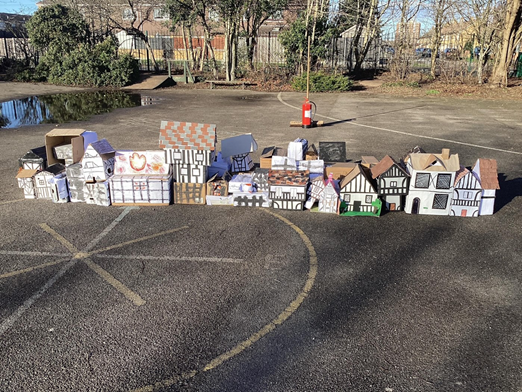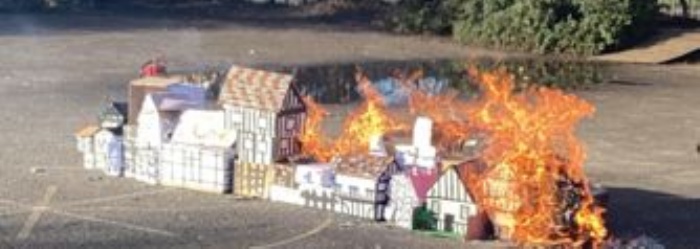 This term, Year 2 watched their Tudor houses go up in flames as they recreated the Great Fire of London.