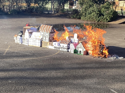 As the houses burned and turned to ash, the children recalled key facts about the event, bringing their learning to life through an exciting and memorable experience.